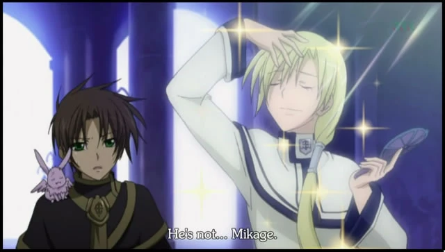 It turns out that Hakuren is related to Shuuri and he and Teito immediately despise each other, even thinking "if this wasn't a sanctuary, I would beat him up". After trading insults, Teito asks Hakuren why someone from the noble Oak family, having a reputation for being in the military and the government, would pursue a life at the church. Later in the day, upon hearing that they are roommates, both of them demand a change, but are unable to. Because they are roommates, they are also assigned as partners for training and the examination.